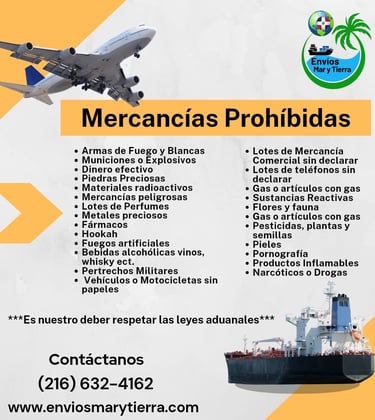 Para los envíos aéreos se toman en cuenta peso y tamaño.